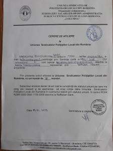 sau contractul dvs. cu Federatia Nationala a Sidincatelor Unite din Politia Locala Romana;